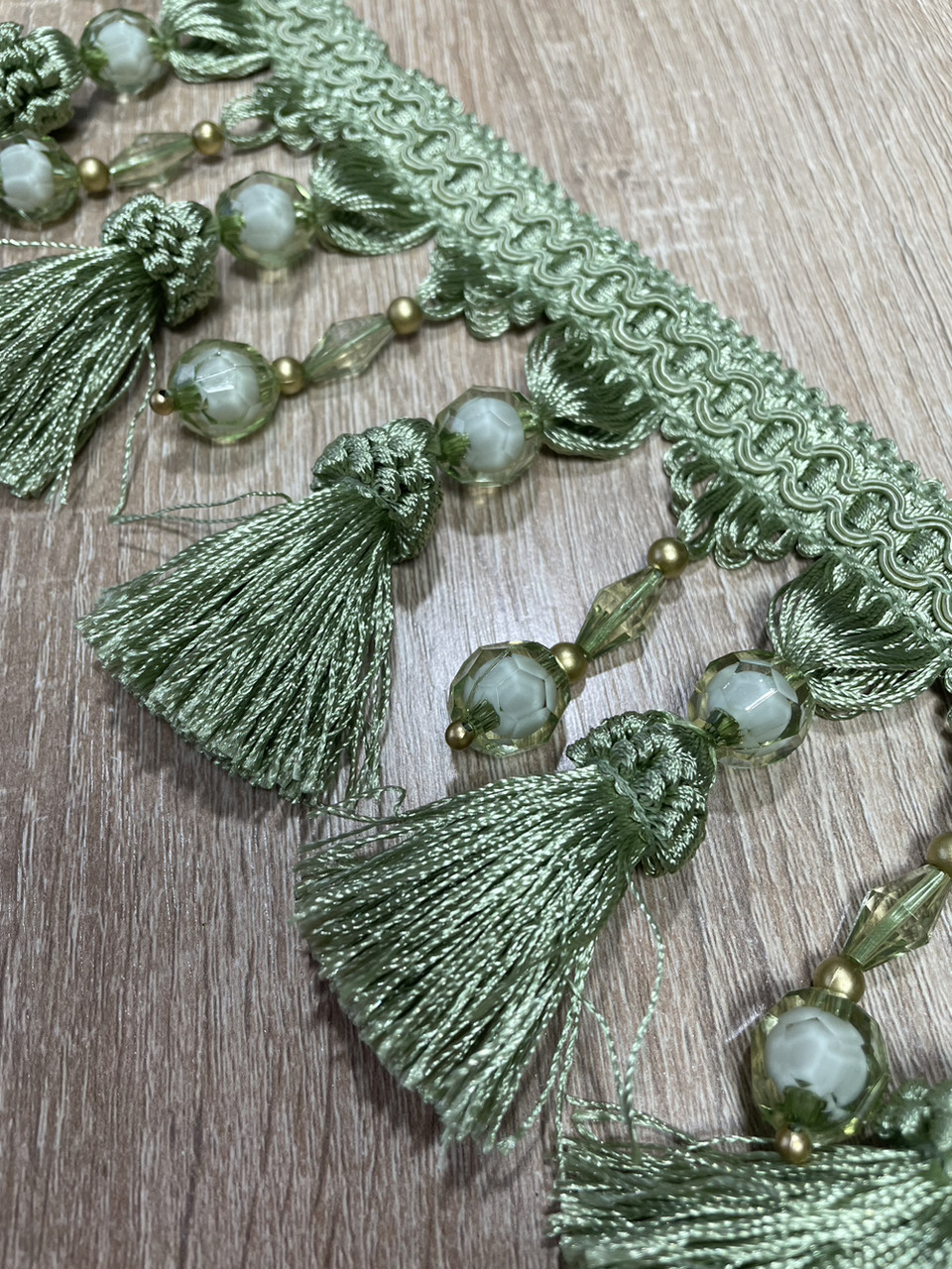 Бахрома зелена зі склярусом і китицями 11 см